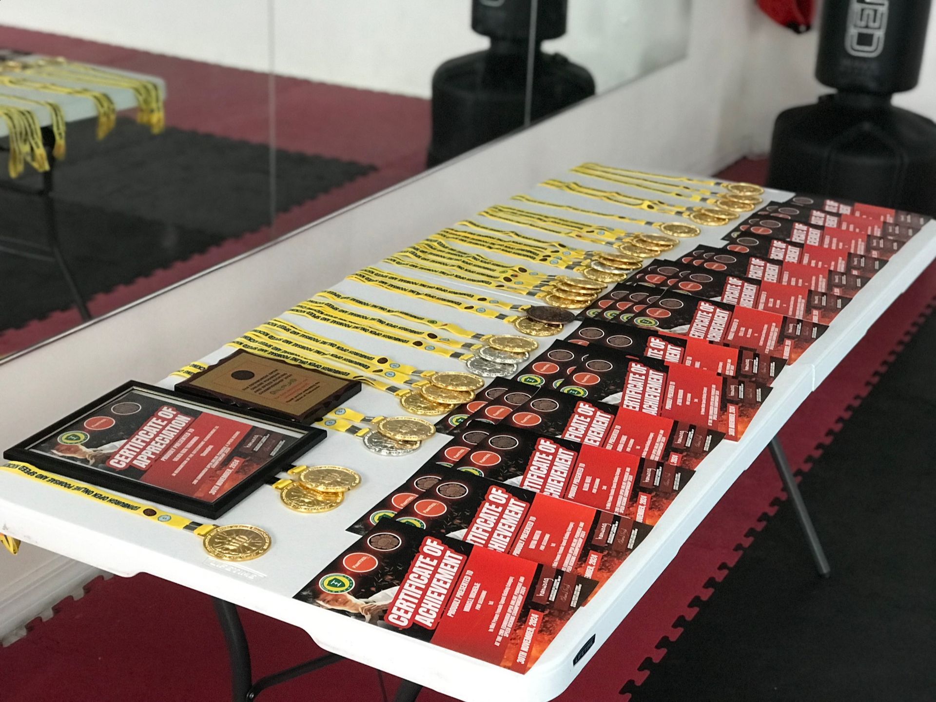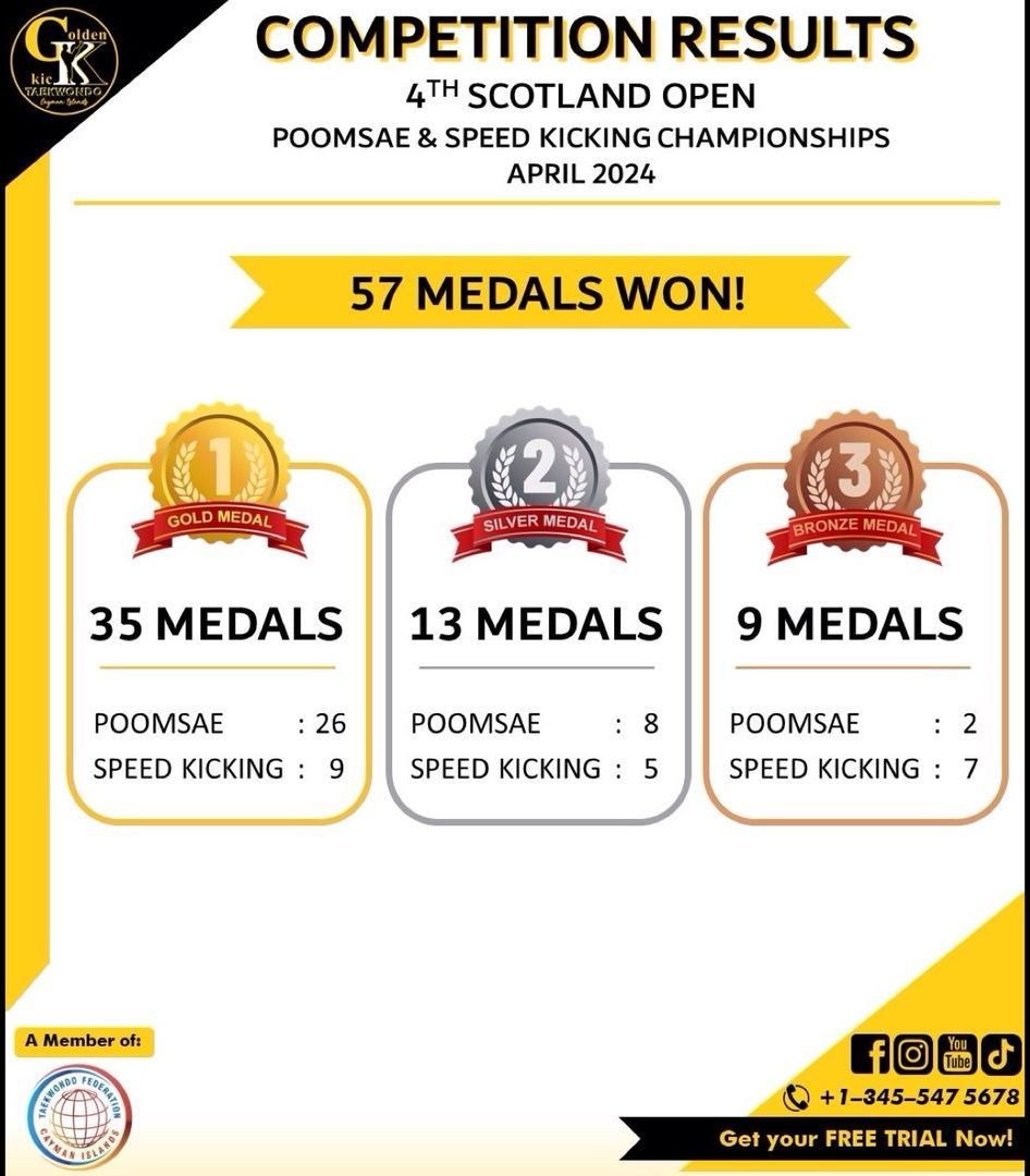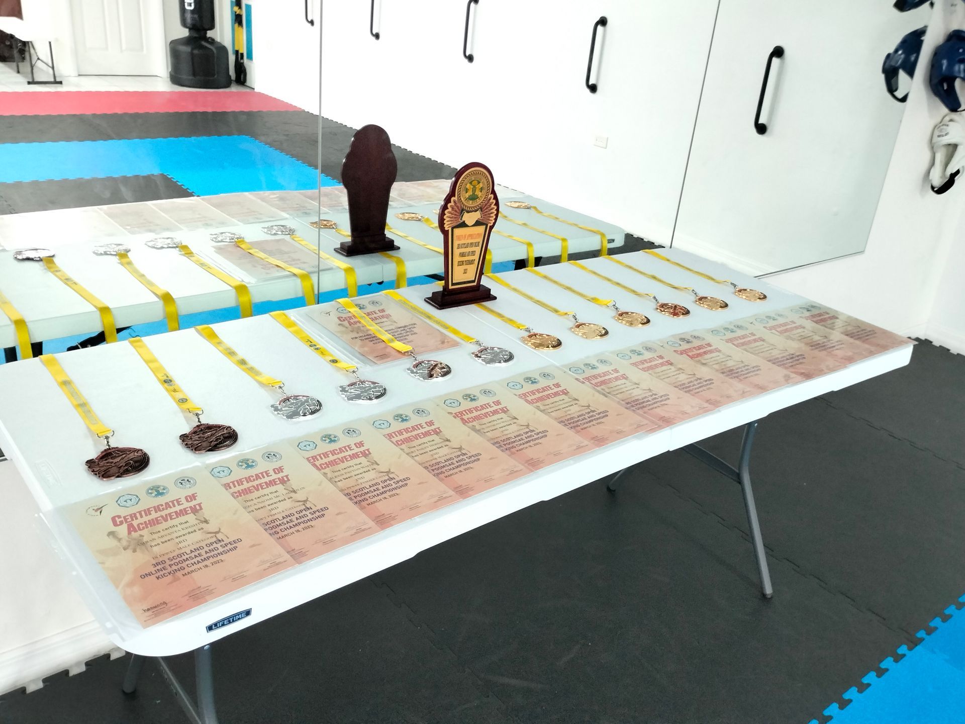 The Trophy, Medals, and Certificates from The 3rd Open Online Scotland International Taekwondo Competition 2023
