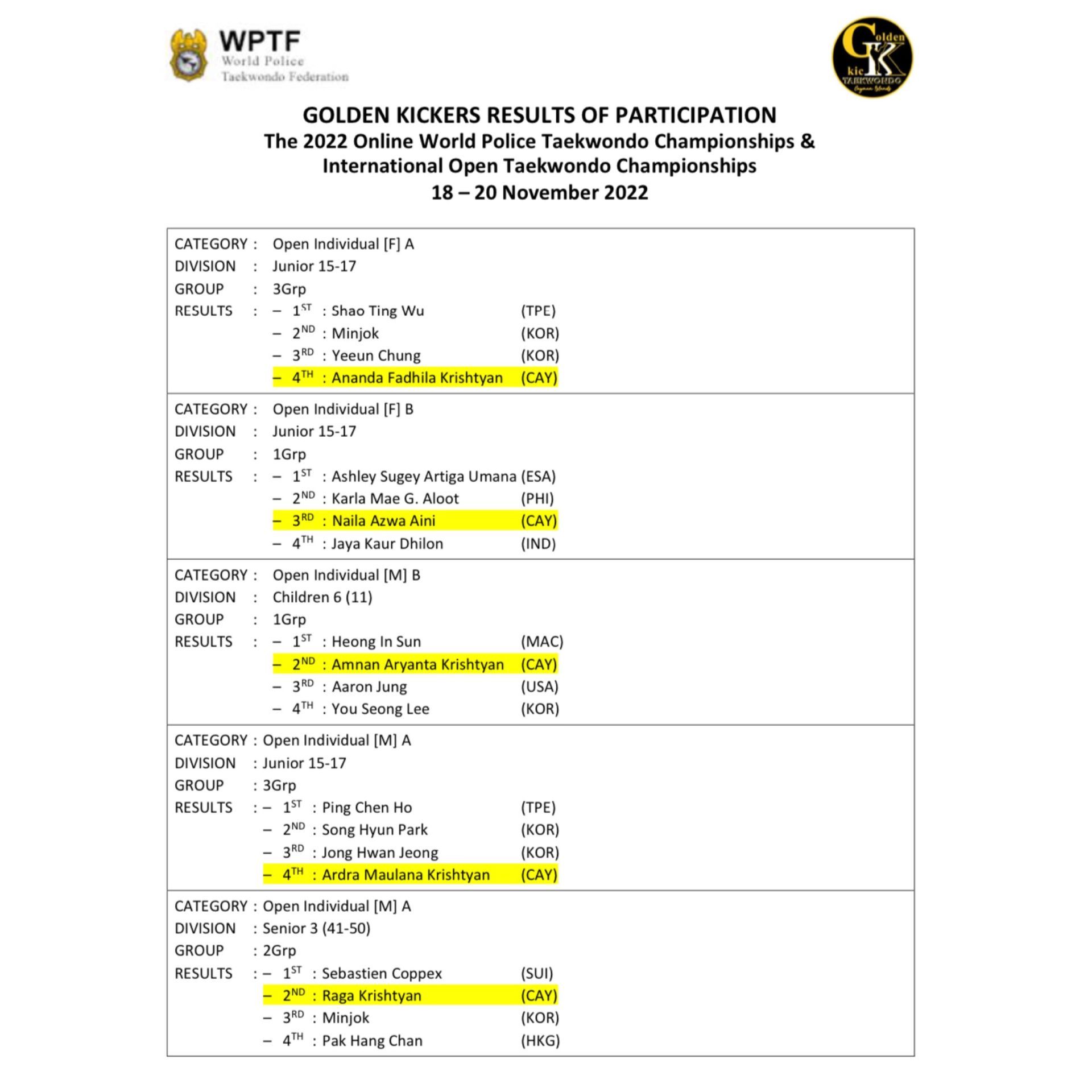Each Golden Kicker successfully achieved 2 Gold Medals